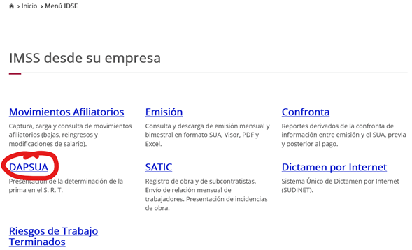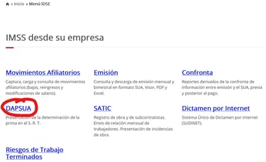 9. Seleccionar la opción “DAPSUA”.