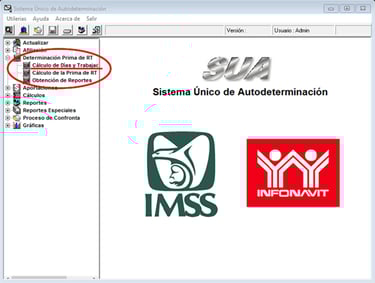1. En el SUA, desplegar el nodo menú “Determinación Prima de RT”, y seleccionar “Cálculo de Días y Trabajadores Promedio”: