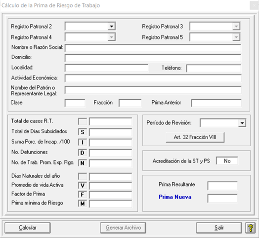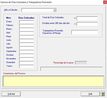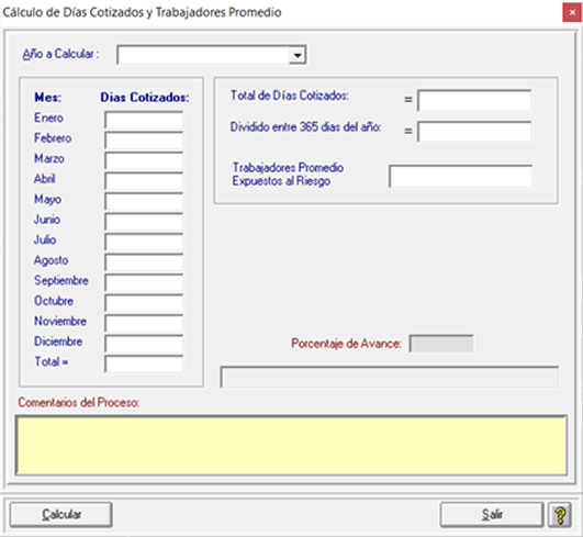 2. Aparecerá la pantalla con los datos en blanco. Pulsar el botón “Calcular” y los datos se llenarán con los datos que el sistema contiene. Es importante asegurarse de que todos los datos de incapacidades y accidentes están correctamente registrados en el sistema, como ya se ha indicado anteriormente.